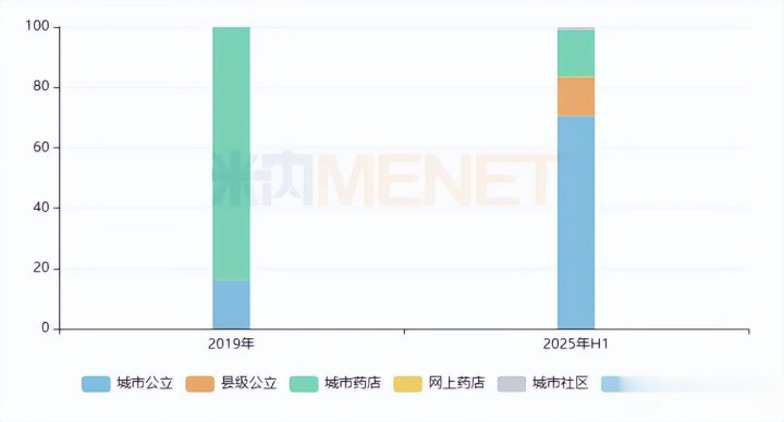 从渠道来看,2019年地舒单抗注射液的销售主战场在城市实体药店,占比达到了83.92%,2020年该产品谈判成功进入国家医保目录(2023年起转入常规目录),随后城市公立医院的占比逐年提升,到了2025上半年占比升至70.52%。