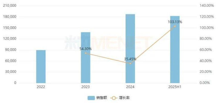 在中国三大终端六大市场,地舒单抗注射液是影响骨结构及其矿化的药物(化+生)市场TOP1产品,2024年销售额达18.7亿元,2025上半年暴涨103.13%,销售额已接近去年全年,潜力正在爆发。
